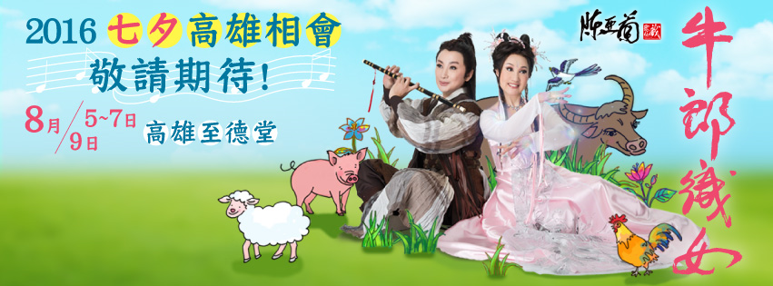 「七夕到高雄 鵲橋再相逢」之【牛郎織女】高雄場 雙星交會日:2016年8/5(五)、8/6(六)、8/7(日)、8/9七夕(二) 雙星交會地:高雄文化中心至德堂