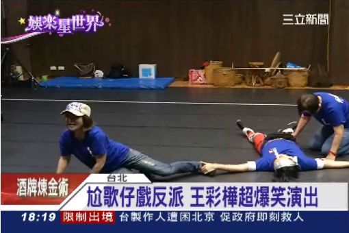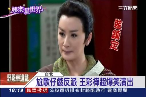 頭戴白色鴨舌帽,王彩樺為歌仔戲彩排神情投入。戲中演出反派,以為陳亞蘭倒地不起,高興得不得了,下一秒卻立刻被陳亞蘭抓腳,嚇得放聲大叫。保庇天后一上台,搞笑功力渾然天成。事實上,這並非王彩樺第一次演歌出仔戲。過去以阿花角色和陳亞蘭搭檔,眼一眨、頭一擺,三八的功力連陳亞蘭都難以招架,忍不住笑場,還得強裝鎮定。