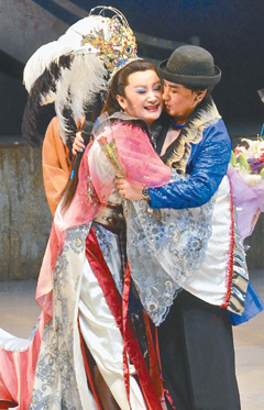 陳亞蘭歌仔戲「牛郎織女」,楊麗花(右)擔任總導演坐鎮,演出結束師徒台上擁抱。