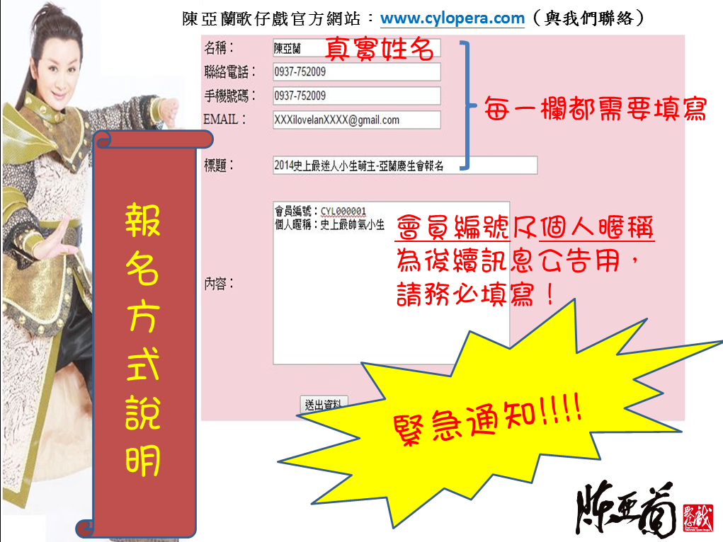 陳亞蘭歌仔戲官方網站:http://www.cylopera.com